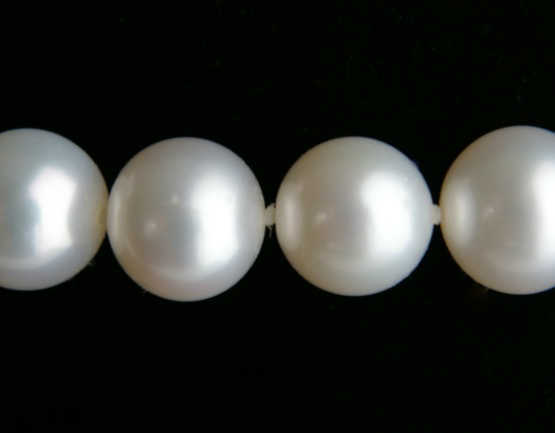 糸の色は通常白、ブラックパールの場合は黒(穴が小さい場合は白)になります。