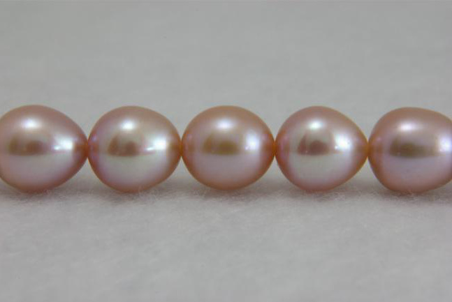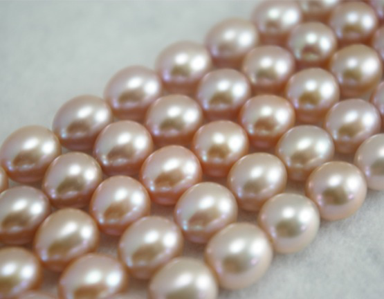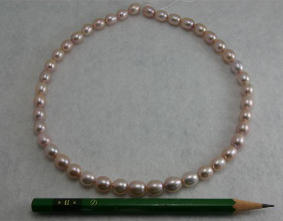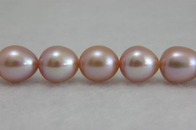 商品名:淡水パール ライス(細長い型) パープルピンク 8×9mm AA級品