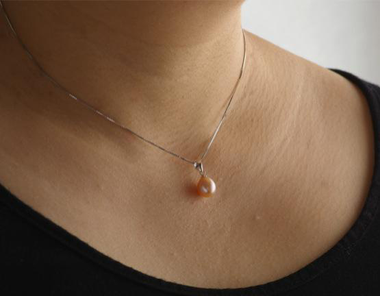 美しい粒選りのAA級ドロップ形パールをペンダントトップにしてみました。