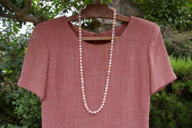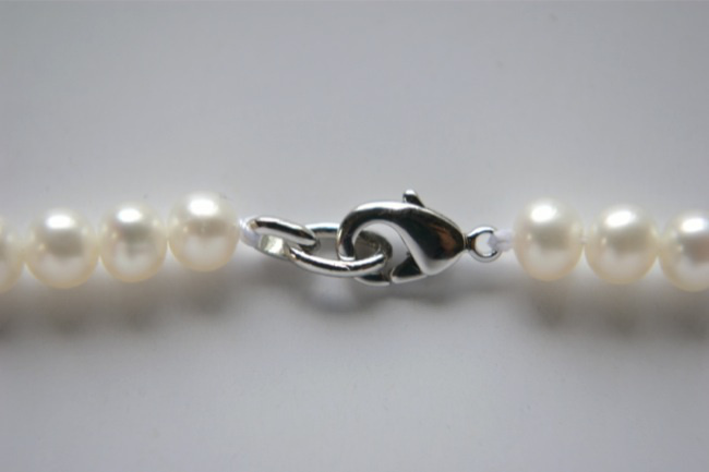 パールとパールの間すべてにノット(結び目)を入れたネックレス加工です。