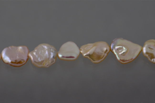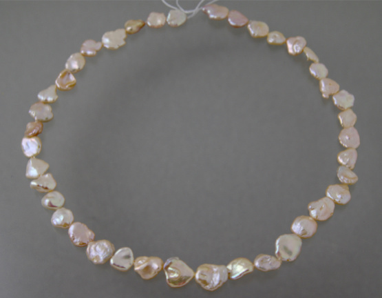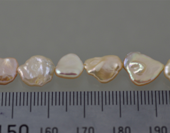 商品名:淡水パール ケシパール 中央穴タイプ オレンジピンク 8-9mm前後 厚み3mm前後