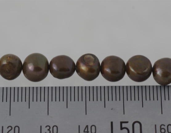 商品名:淡水パール フラット カフェブラウン5-8mm弱 厚み5-6mm