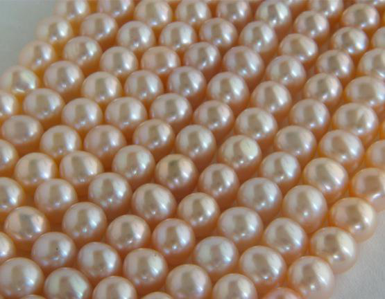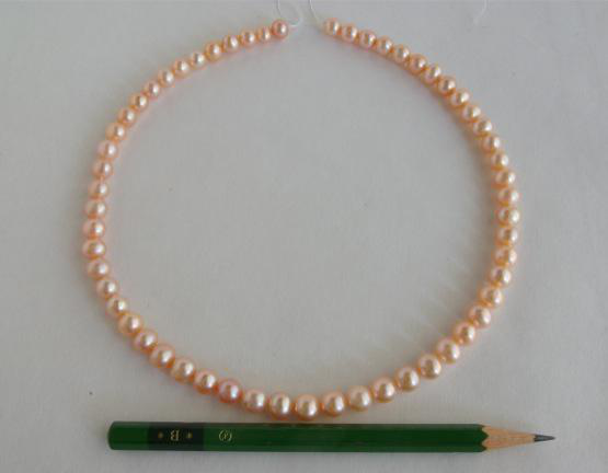 商品名:淡水パール ラウンド(丸型)オレンジピンク7-8mm AB級品
