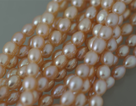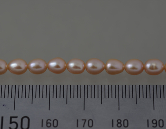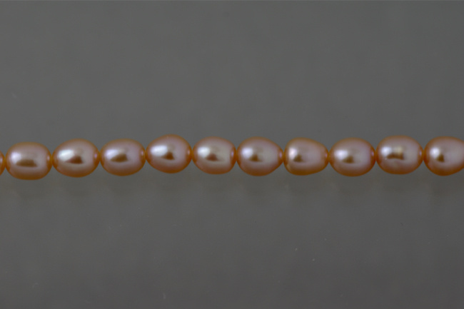 商品名:淡水パール ライス(細長い型) オレンジピンク 4.5〜5×5.5〜6mm AA級品