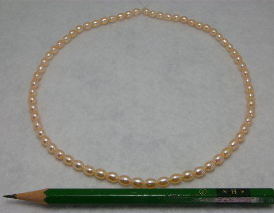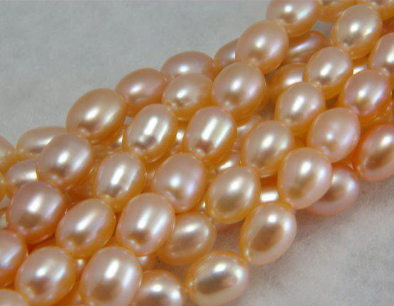 商品名:淡水パール ライス(細長い型) オレンジピンク 4×5mm前後 A級品