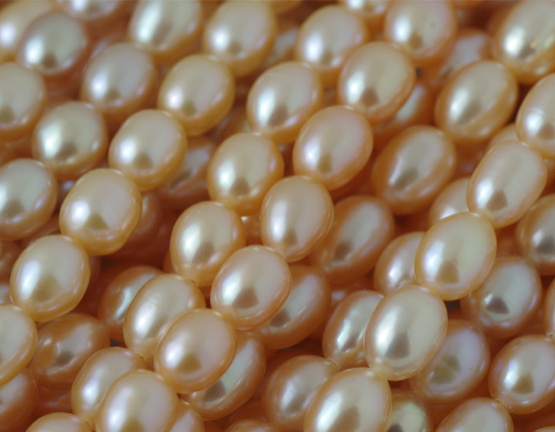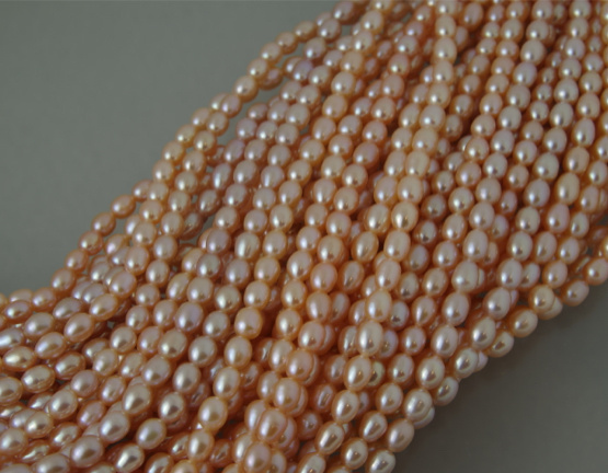 商品名:淡水パール ライス(細長い型) オレンジピンク 6×7.5mm AA級品