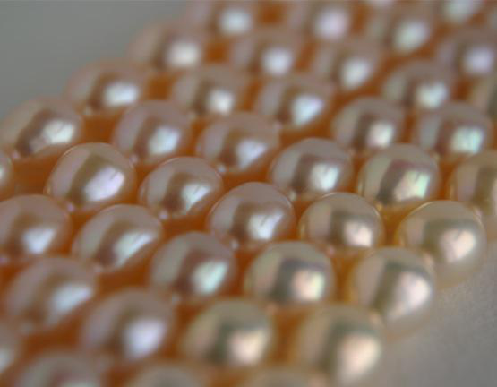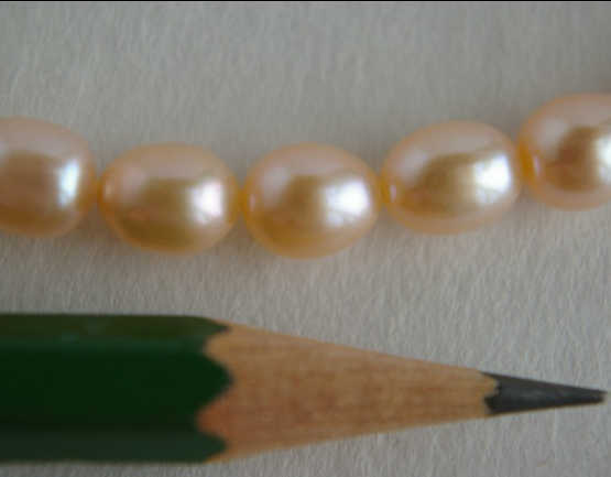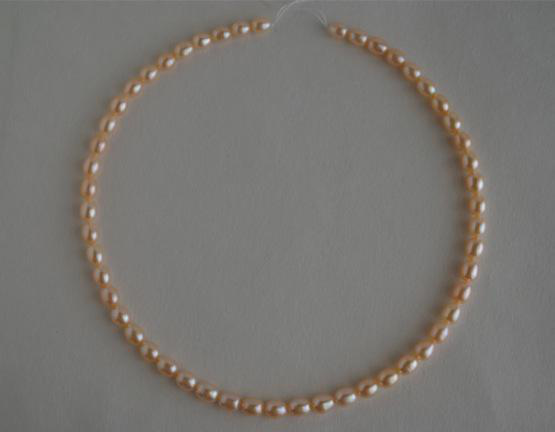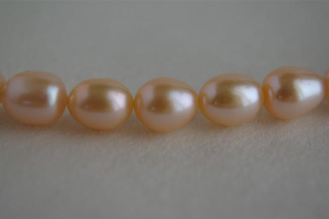 商品名:淡水パール ライス(細長い型) オレンジピンク 6×8mm A級品