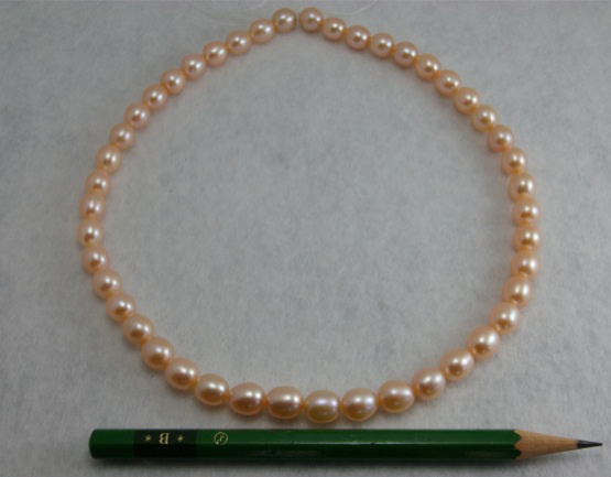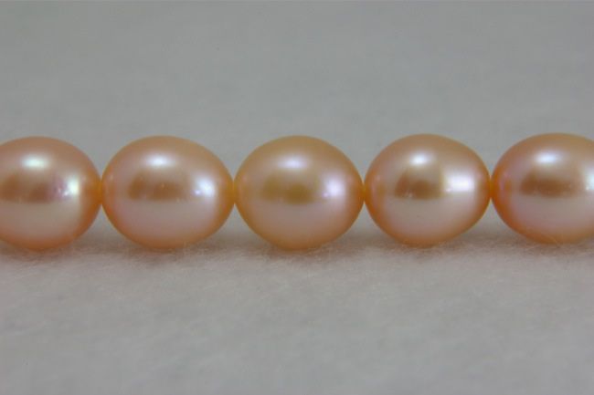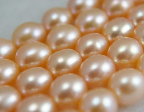 商品名:淡水パール ライス(細長い型) オレンジピンク 8×9mm AA級品