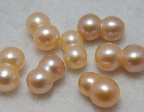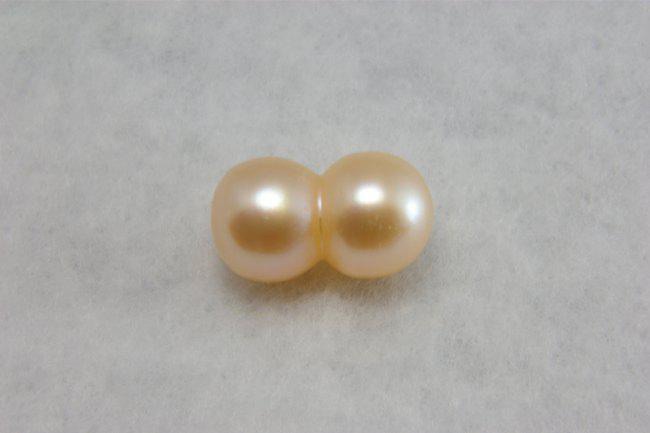 商品名:淡水パール 双子真珠 M オレンジピンク 12-15×7-9mm A級品