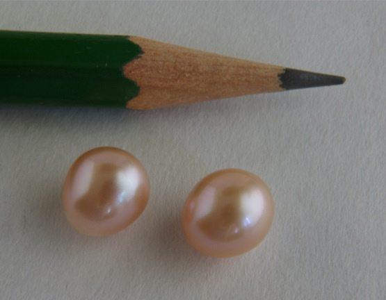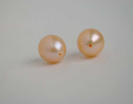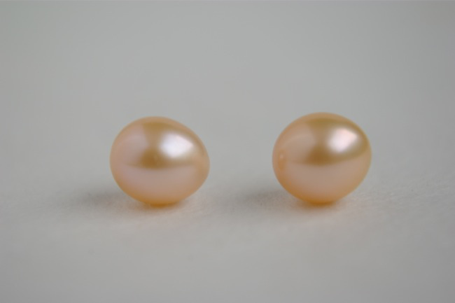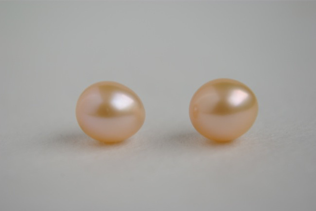 商品名:淡水パール 片穴ルース ドロップ型 オレンジピンク 7-8mm AA級品
