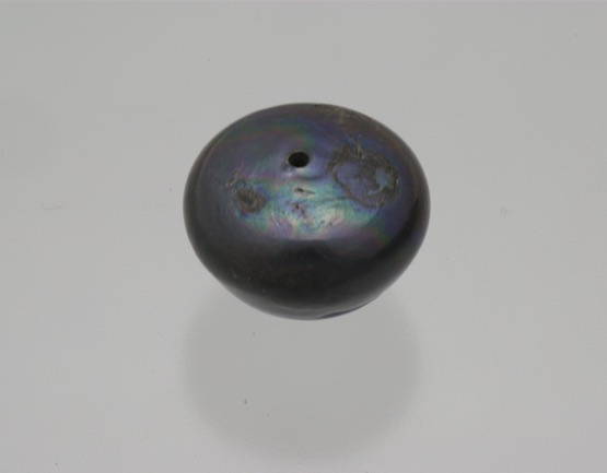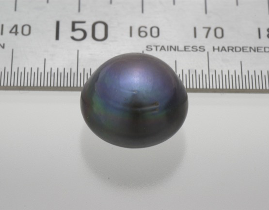 商品名:淡水パール 片穴ルース ボタン型ポテト ブルーブラック16mm AB級品