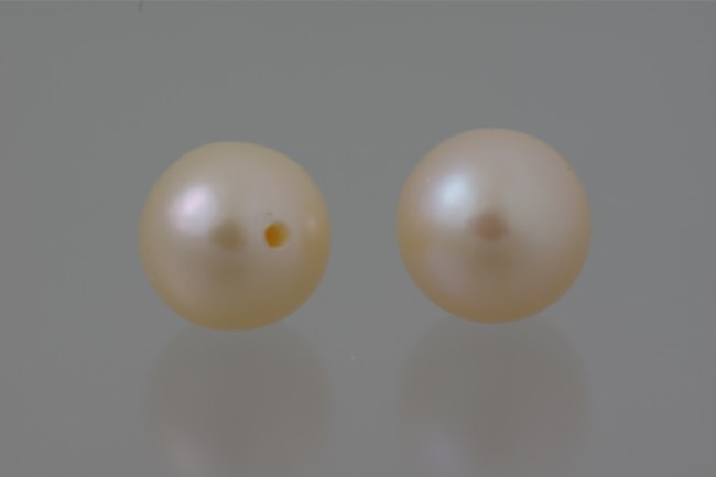 商品名:淡水パール 片穴ルース ラウンド型 オレンジピンク 7-8mm AA級品