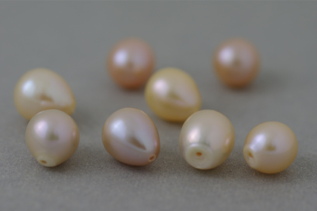 商品名:淡水パール 片穴ルース ドロップ型 オレンジピンク 7-8mm AB級品 8個セット