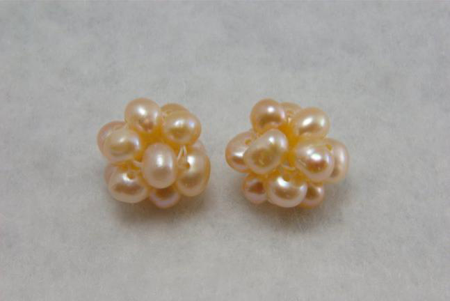 商品名:淡水パール メッシュボールモチーフ小 オレンジピンク 8-10mm