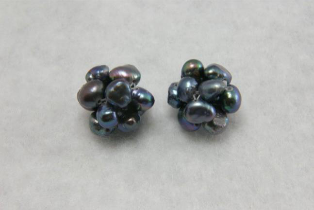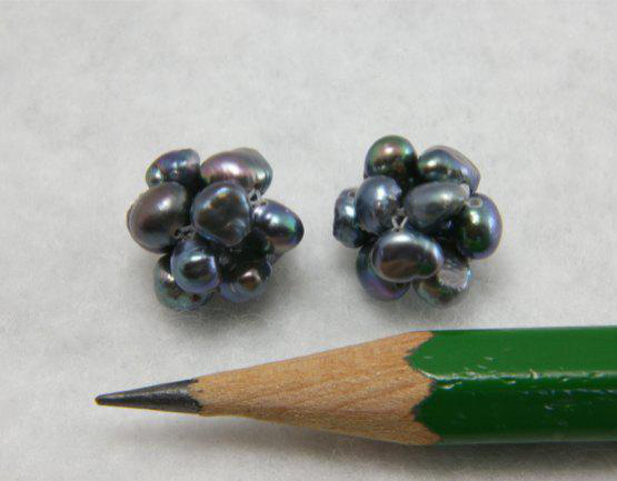 商品名:淡水パール メッシュボールモチーフ小 ブルーブラック 8-11mm